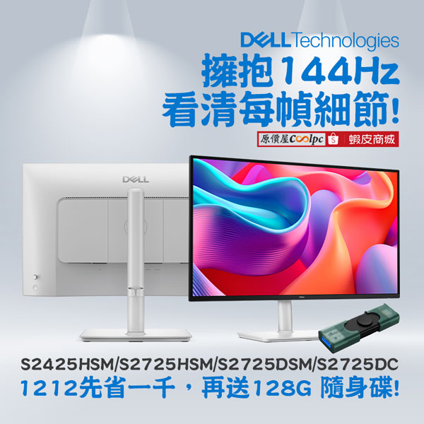 雙十二大促銷買高單價商品最划算!像是今天帶來的 Dell Plus S2425HSM/S2725HSM/S2725DSM/S2725DC 這四台螢幕現折一千之外,加碼再送一支 128GB 隨身碟,透過蝦皮商城下單還能使用店家券+蝦皮券累加有機會省更多(點我查看)!有興趣的朋友趕緊手刀下單,好好把握機會。