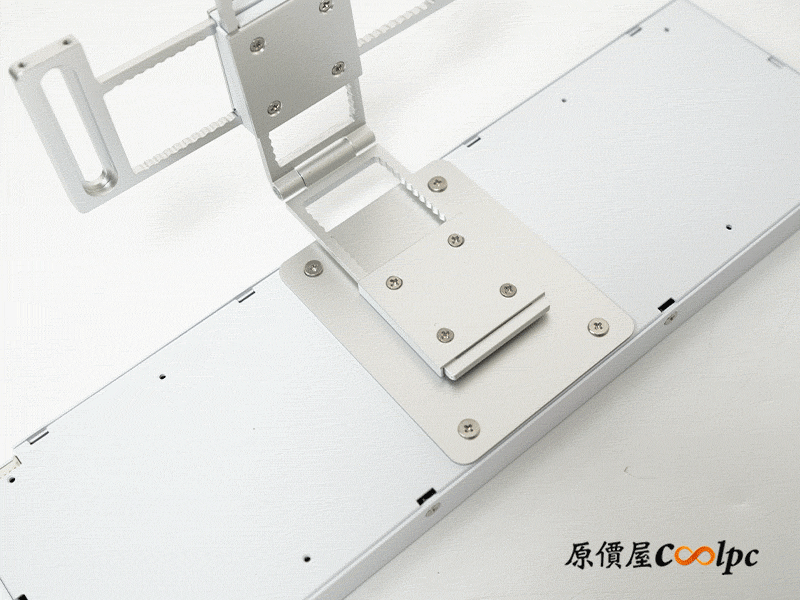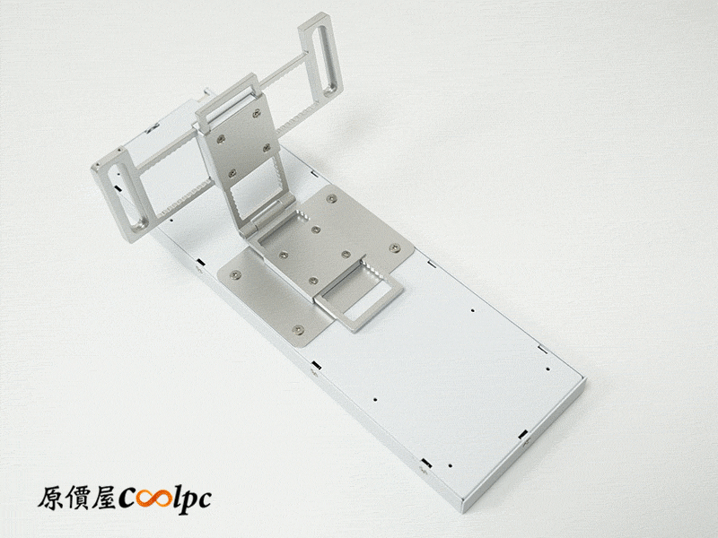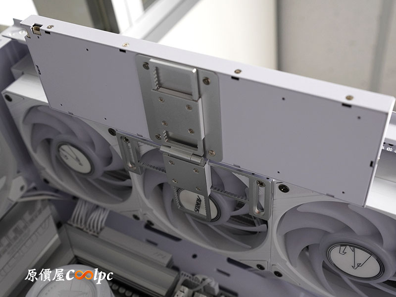 最靈活的就是這個螢幕支架。內建了鉸鏈系統(角度調整)與滑軌結構(距離調整),無論鎖在 120mm 或 140mm 風扇位,都能在機殼內部找到一個剛剛好的完美位置,徹底解決了改裝時配件安裝不夠彈性的痛點。