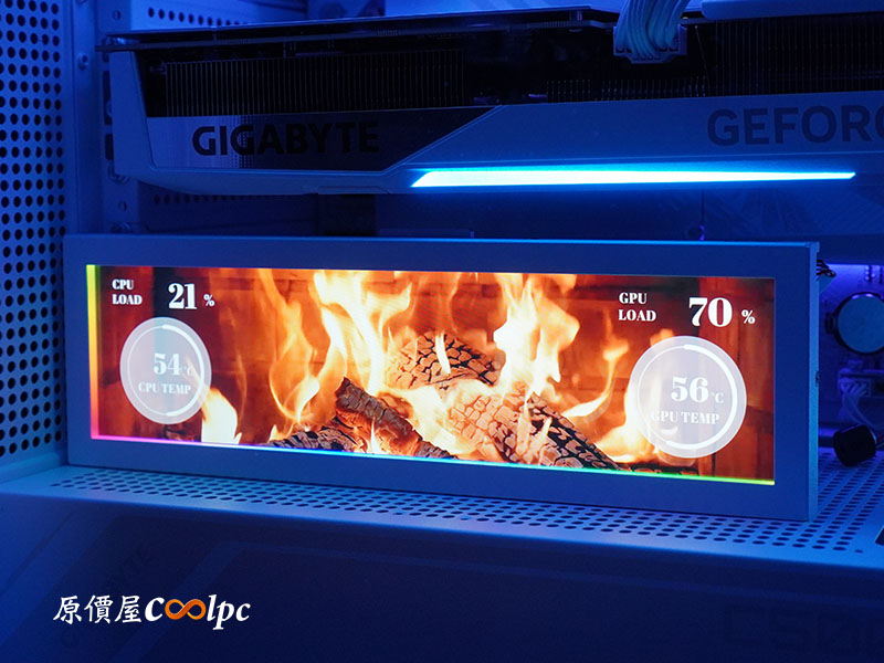 安裝方式也相當多種,可以將支架鎖在風扇螺絲孔位上,可以立於桌面上,甚至提供 3M 黏膠,不需要可以直接黏貼在機殼內部。連接方式僅須接上主機板 USB 2.0 9Pin,亦可轉接成 Type-A 直接接在主機板後方。作為完全獨立的顯示器使用,且無需佔用顯示卡。