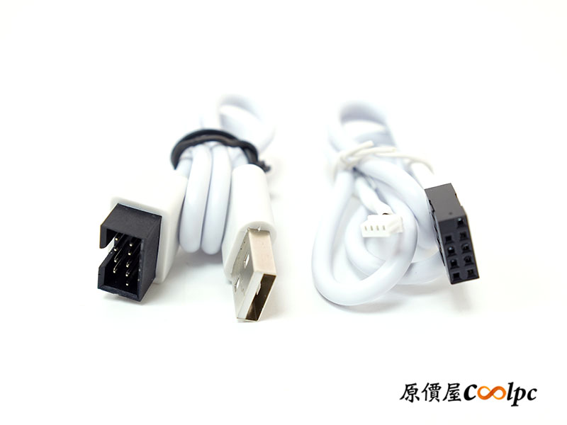 配件中的 USB 2.0 9Pin 內接線、USB Type-A 轉接線,讓玩家將螢幕放在機殼內,可以接在主機板內的 USB 2.0 9Pin 擴充槽直接使用。若要改成放在主機外部或桌面上,也可以再轉接成 USB Type-A 介面,這樣直接插主機板後方 I/O 即可使用。