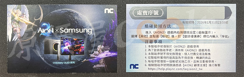 活動贈品:AION 2 x SAMSUNG 虛寶序號卡(限量100張)