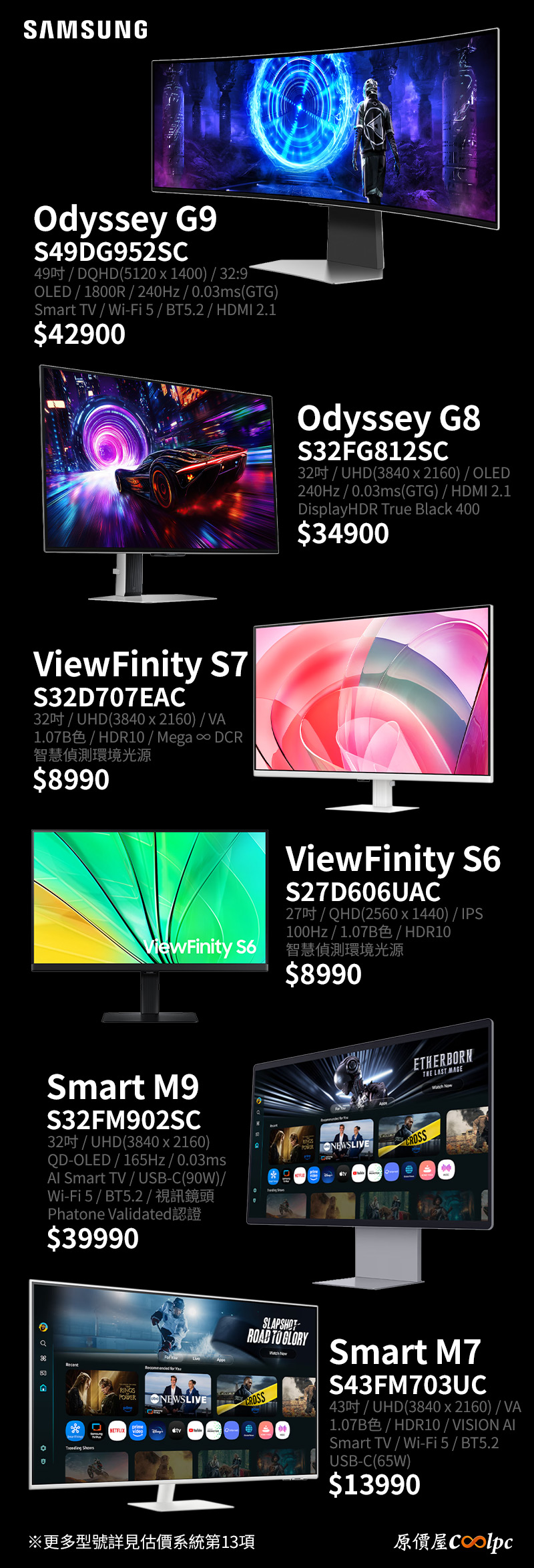 無論追求遊戲極速、專業色彩還是智慧生活,三星顯示器都能滿足你的需求,而遊玩《AION 2》的玩家當然最推三星Odyssey系列,專注於頂級畫質和極致速度、沉浸感,頂規型號搭載QD-OLED或Mini LED技術,呈現深邃黑與極致亮,畫面細節一覽無遺,或是1000R黃金曲率設計,完美貼合人眼視角,提供無與倫比的沉浸感;又或者以高達240/360Hz的刷新率,帶來專業級的遊戲流暢度。除了遊戲機種外,三星還有專為創意設計而生的ViewFinity系列,強調色彩精準度、高生產力與人體工學,具備高色域覆蓋率,確保色彩準確滿足設計、攝影專業需求,同時也提供4K UHD、5K等高解析度規格,內建USB-C(PD)接口,一條線就能高效率傳輸影像和充電,簡化桌面線材與工作流程。另外三星也有推出智慧電視Smart Monitor系列,內建Smart TV OS,可直接登入Netflix、YouTube等app,支援AirPlay可連接手機或平板,螢幕也整合了Microsoft 365,透過螢幕就能獨立運作Office,不過微軟帳號必須有相關訂閱才能使用喔。