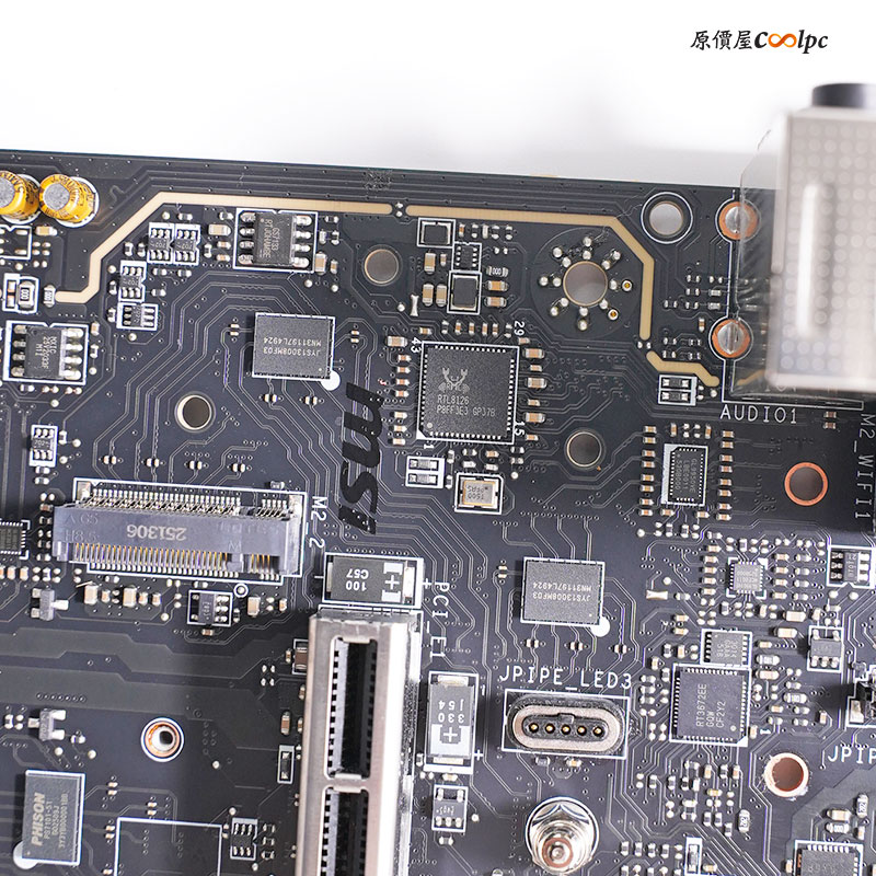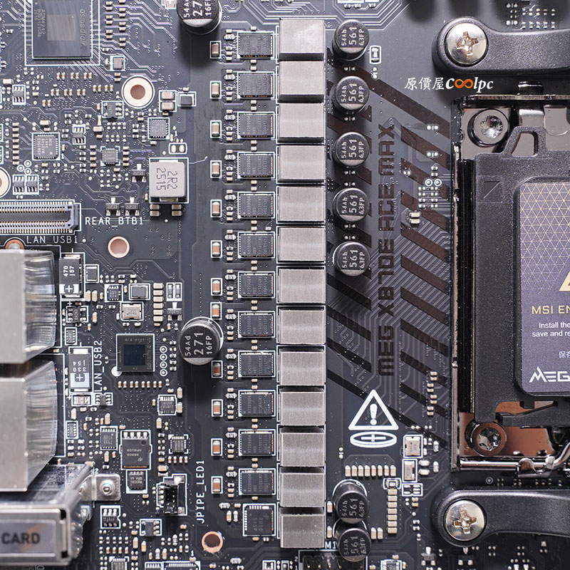 過電的時候後方 I/O 上的螢幕會有微星龍紋的 LOGO,具備 ARGB 的效果,連動 主要 M.2 散熱裝甲上 ACE 燈效。