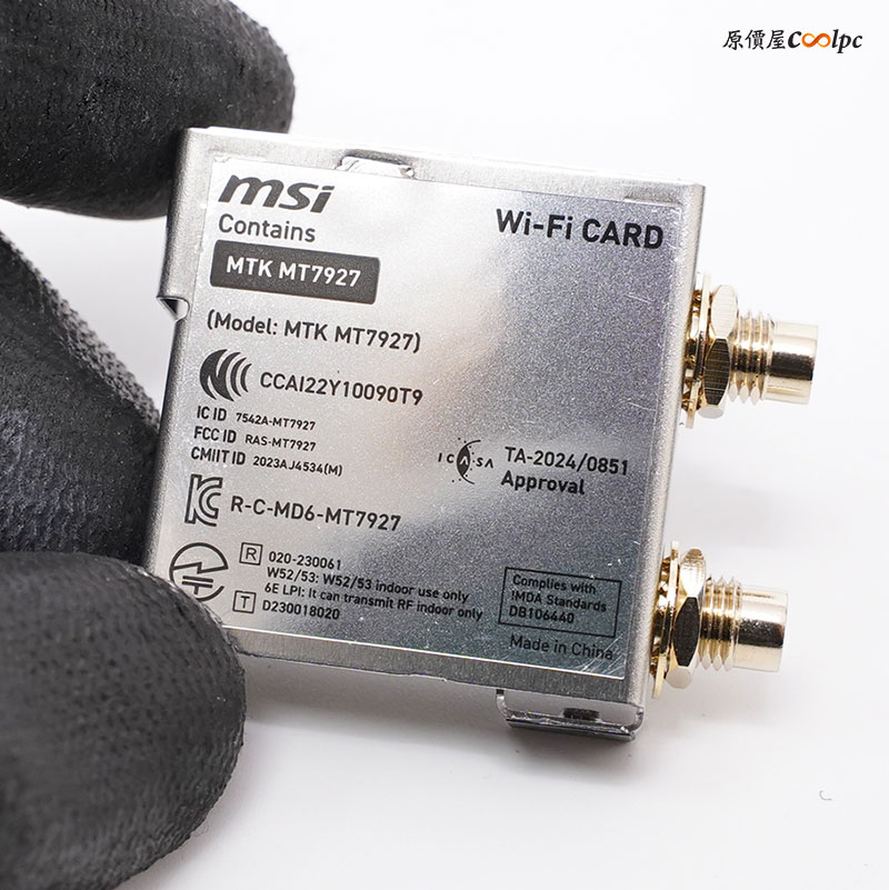 I/O 出廠已經安裝好後擋板,介面也是給的相當多樣豐富!有 HDMI 2.1、9 個 USB3.2 Gen2(10Gbps) Type-A、2 個 USB-C(40Gbps)、2 個 USB-C(10Gbps)、Flash BIOS、Clear CMOS、Smart 按鈕、10GbE、5GbE、Wi-Fi 7、S/PDIF OUT、3.5mm MIC IN、3.5mm L OUT。