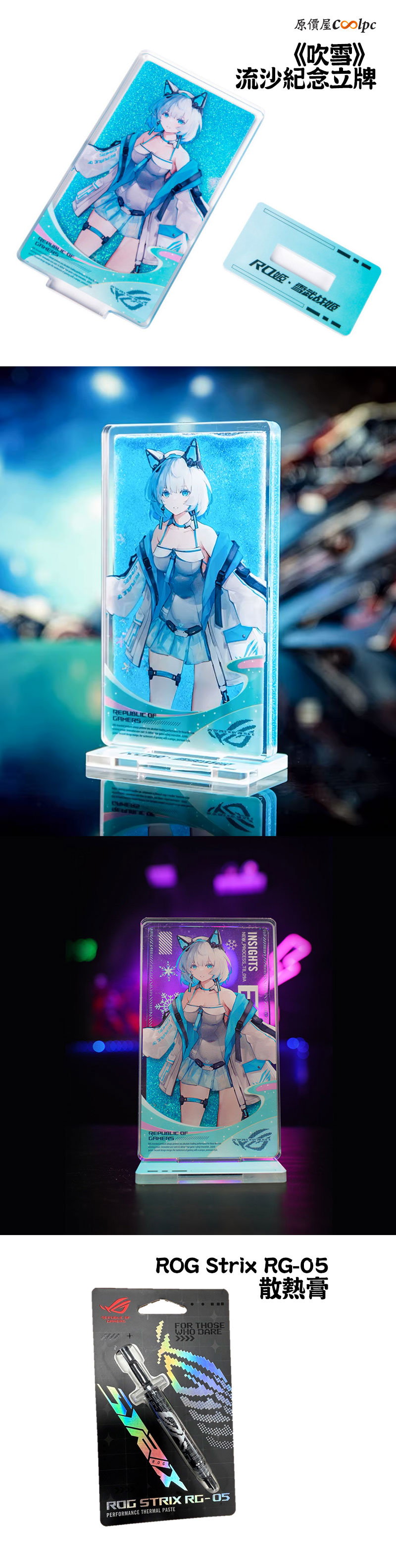 活動贈品:限量贈送華碩《吹雪》流沙紀念立牌和 ROG Strix RG-05 散熱膏