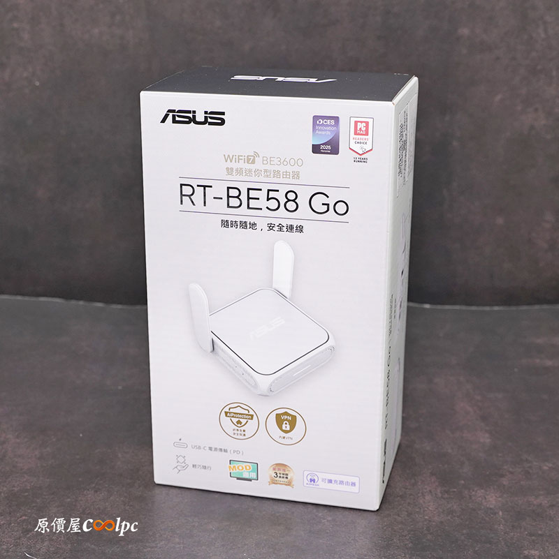 【開箱】帶著 WiFi 7 無線路由器去旅行!ASUS RT-BE58 Go 雙頻迷你型路由器。