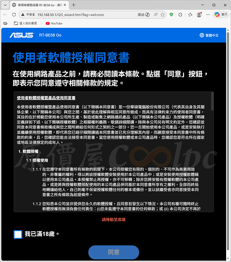 設定無線路由器你可以選擇有線或無線方式,小編示範是有線網路,網路線 LAN 對接主機板 LAN 插槽,透過網頁瀏覽器進後台網址 http://www.asusrouter.com,即可進入設定畫面。請依照使用的網路環境設定即可,預設的網路名稱與密碼可以修改,怕忘記的話使用預設的即可。