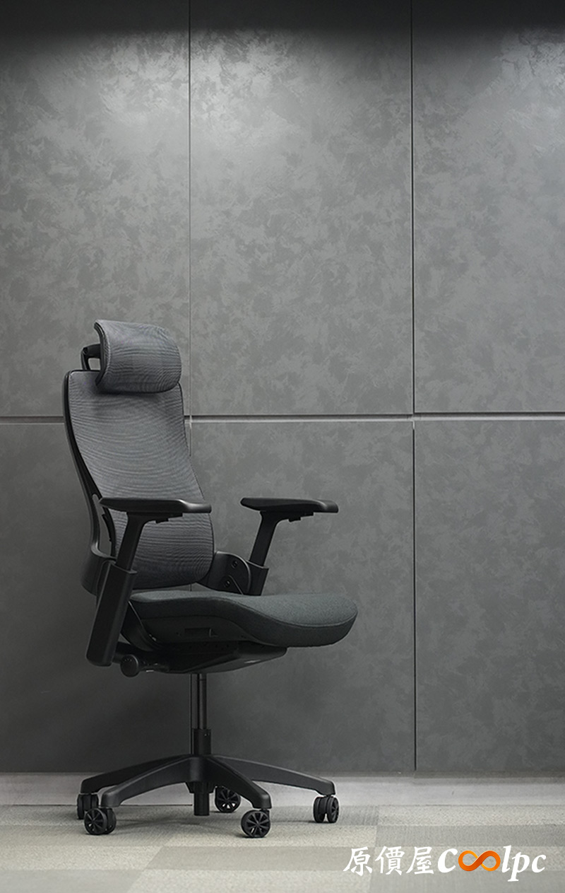 椅背大面積網布防悶熱,從側面看椅背形狀就像脊椎曲線一般,能夠給予腰背良好的支撐,釋放身體的壓力。