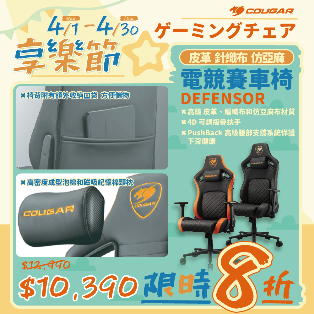 COUGAR DEFENSOR F 電競椅(編織布) $12990↘$10390 蝦皮