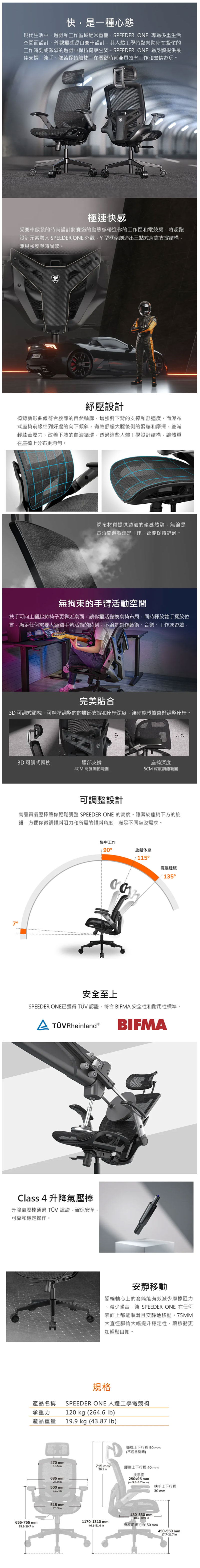 「COUGAR E-Star 電動升降電競桌」桌面升級,一鍵到位!E-Star 系列主打「電動升降+電競規格+質感外型」,不論你是遊戲派、工作派,還是白天上班晚上開打的全能玩家,都能一次滿足。擁有電動升降設計一鍵調整高度,坐著打、站著玩都 OK!久坐族的腰背終於能喘口氣了,穩固的桌架結構,擁有升降不晃、不抖的優點。還有大尺寸桌面選擇,120cm/140cm 兩種尺寸,螢幕、主機、鍵盤滑鼠全攤開也不擁擠。黑/白經典雙色系,看你喜歡電競風還是極簡風,一次配到好!這不只是張「會升降的桌子」,而是讓你每天使用都更舒服的電競基地!重點是現在買還送一張「真的能坐一整天」的實用椅子,送的絕不是陽春贈品,而是「COUGAR Speeder One」人體工學電競椅呢!主打長時間使用的舒適與支撐力,人體工學椅背設計也貼合背部曲線,另外還有高透氣材質,久坐不悶熱!穩定的支撐,讓你打遊戲、剪片、加班都撐得住~現在不用額外加價,直接跟著電競桌一起帶走吧!等於一次把「桌+椅」全部升級完成~數量有限,錯過就真的要自己買椅子了喔!