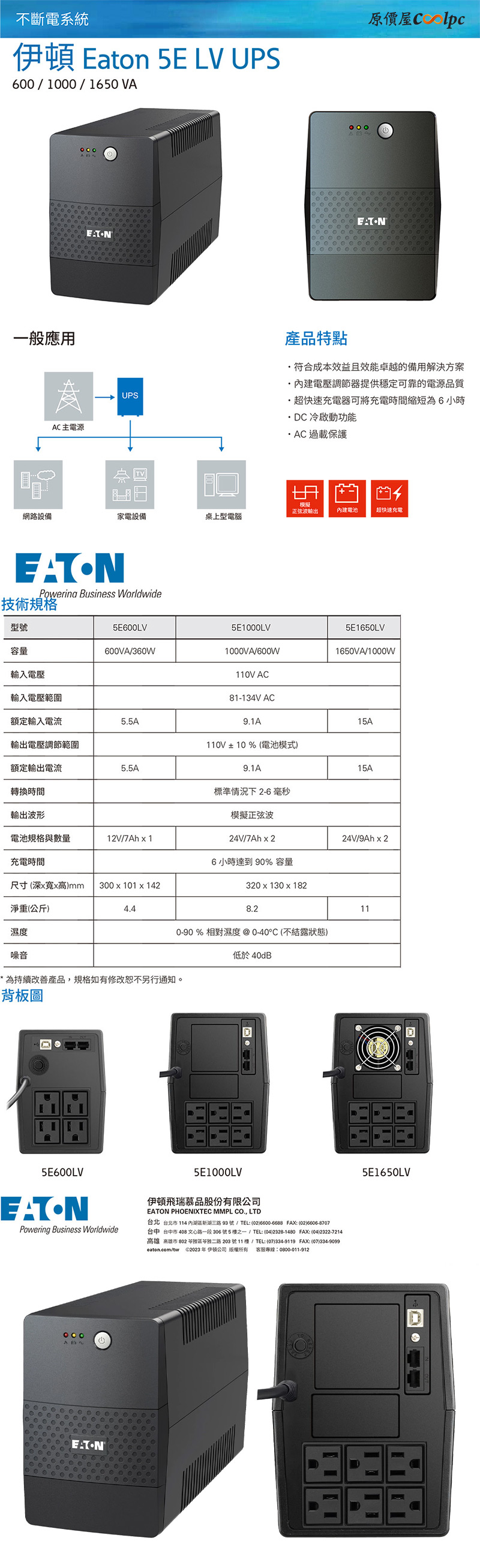 Eaton 5E1650LV 1650VA/1000W 在線互動式/模擬正弦波/直立式/1年保固, $5990↘$5490
