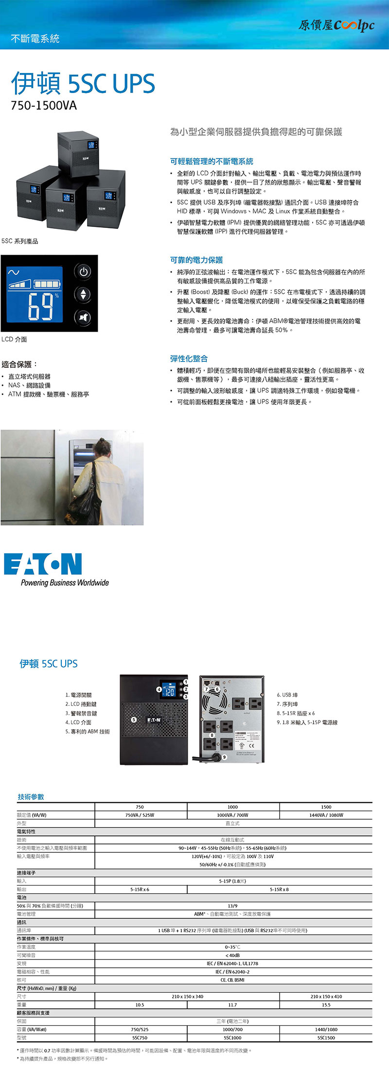 Eaton 5SC1500 1440VA/1080W/在線互動式/純正弦波輸出/直立式/3年零件保固/2年電池保固, $9690↘$8990