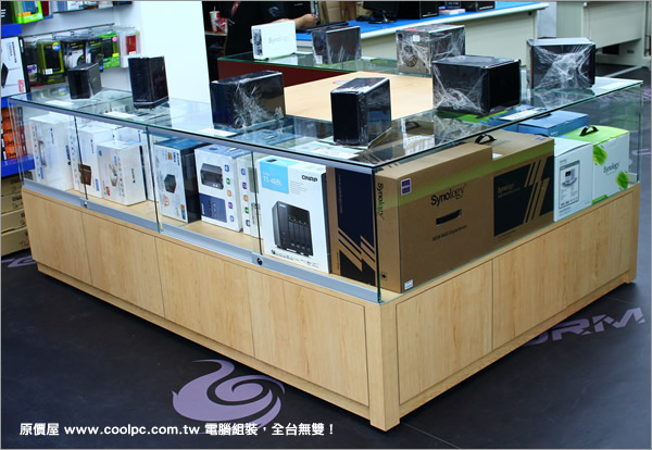 這是櫃位放的是NAS,現在智慧型手機、平板興盛,相對的這種個人雲端儲存設備必然隨之重要,不管是Synplogy或QNAP等,在原價屋新竹光復店通通可以買得到!