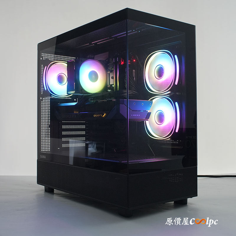 * SAMA SAK736 幻境界(黑) 機殼 & X40L 散熱器:270° 無打孔全景玻璃,視覺第一的海景房設計,讓內部技嘉顯卡的強悍視覺與 ARGB 燈效一覽無遺!內附 3 顆 12 公分 ARGB 風扇,讓內部散熱再進化!搭配 SAMA X40L 四導管散熱器,優化的風道設計迅速帶走廢熱,確保 CPU 在刷怪練功、掛網通宵時始終保持穩定。