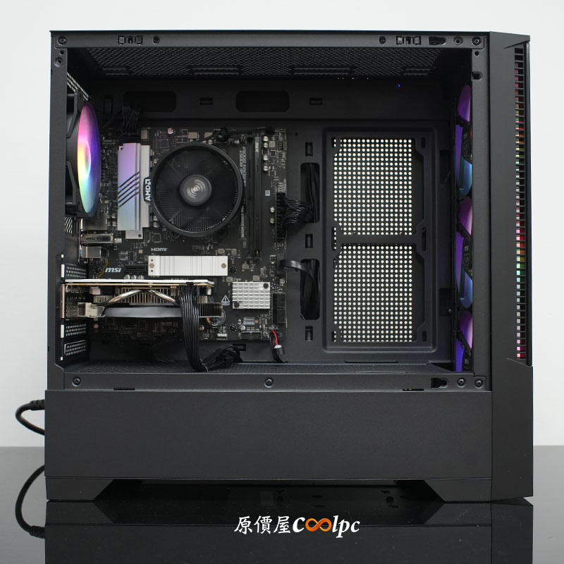 * 微星 PAG FORGE M100L 機殼:前 + 側雙玻璃面板設計,兼具質感與未來感,讓「雪螳螂」的動感視覺一覽無遺!內建 4 顆 ARGB 風扇,不僅質感加分,散熱效率也幫你做好做滿!不論是擺在桌面還是地上,都是全場注目的焦點!