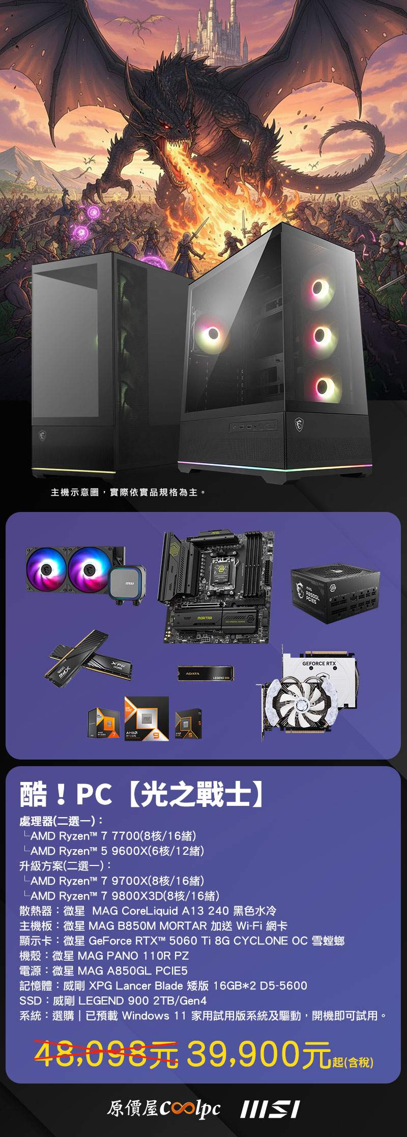 酷!PC【光之戰士】NT$48,098↘NT$39,900起