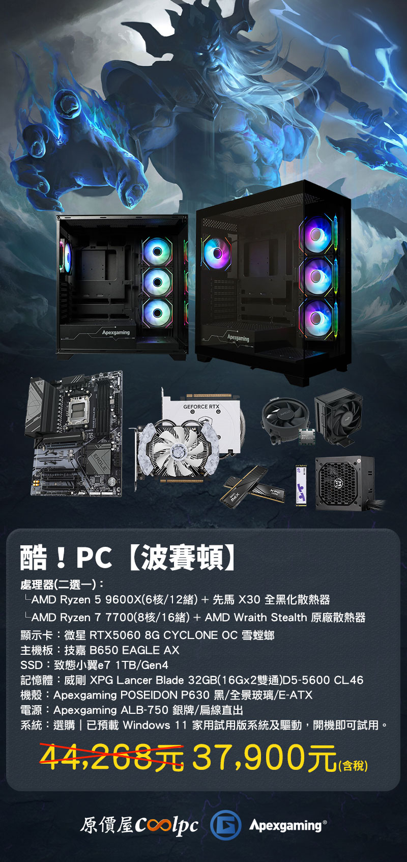 酷!PC【波賽頓】NT$44,268↘NT$37,900|限量 200 台