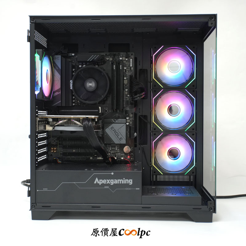 * Apexgaming POSEIDON P630 全景機殼 & ALB-750 銀牌電源: 具備 270° 無死角全景玻璃,打造絕美「海景房」視覺展示,黑色簡約鋼化玻璃側板讓內部硬體如藝術品般展現,最高支援 E-ATX 主機板,內建 4 顆 ARGB 風扇,不只漂亮,散熱效率更佳。電源通過 80 PLUS 銀牌認證,穩定的供電輸出,採用扁線設計方便理線,讓主機內部空間簡潔流暢!